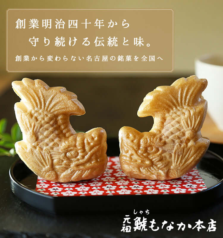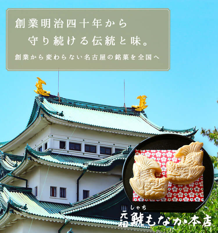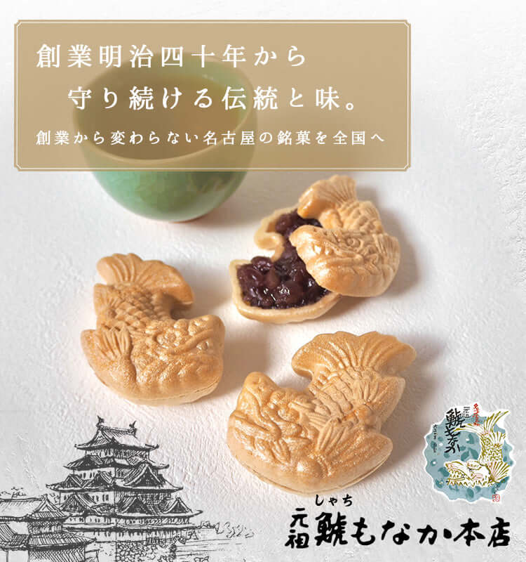 元祖鯱もなか本店は、明治40年に創業し、大正10年『元祖鯱もなか』の創製から、100年以上にわたり名古屋のシンボルの金のしゃちほこをイメージした「見て楽しい・食べて美味しい」鯱のお菓子を真心込めてお作りしております。名古屋のお土産にぴったりな人気の鯱の形のお菓子のほか、和菓子・洋菓子・季節のお菓子なども製造、販売しております。お客様の「おいしい」の一言が、私たちスタッフ一同何よりの喜びです。